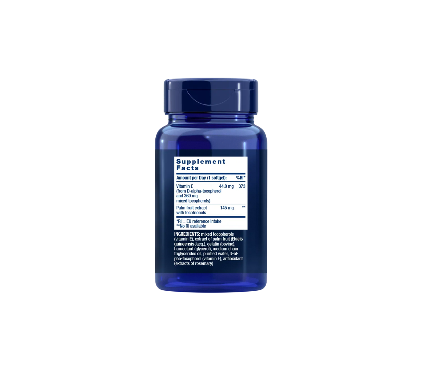 Vitamin E ist keine einzelne Substanz, sondern eine Familie von acht verwandten, fettlöslichen Antioxidantien. Im Gegensatz zu den meisten Vitamin-E-Präparaten enthält diese Formel alle acht Formen (Tocopherole und Tocotrienole) und bietet so die volle antioxidative Kraft von Vitamin E im Kampf gegen freie Radikale. Es hemmt die Zellalterung, fördert die Immun- und Nervensystemgesundheit, die Augengesundheit und die kognitive Funktion.